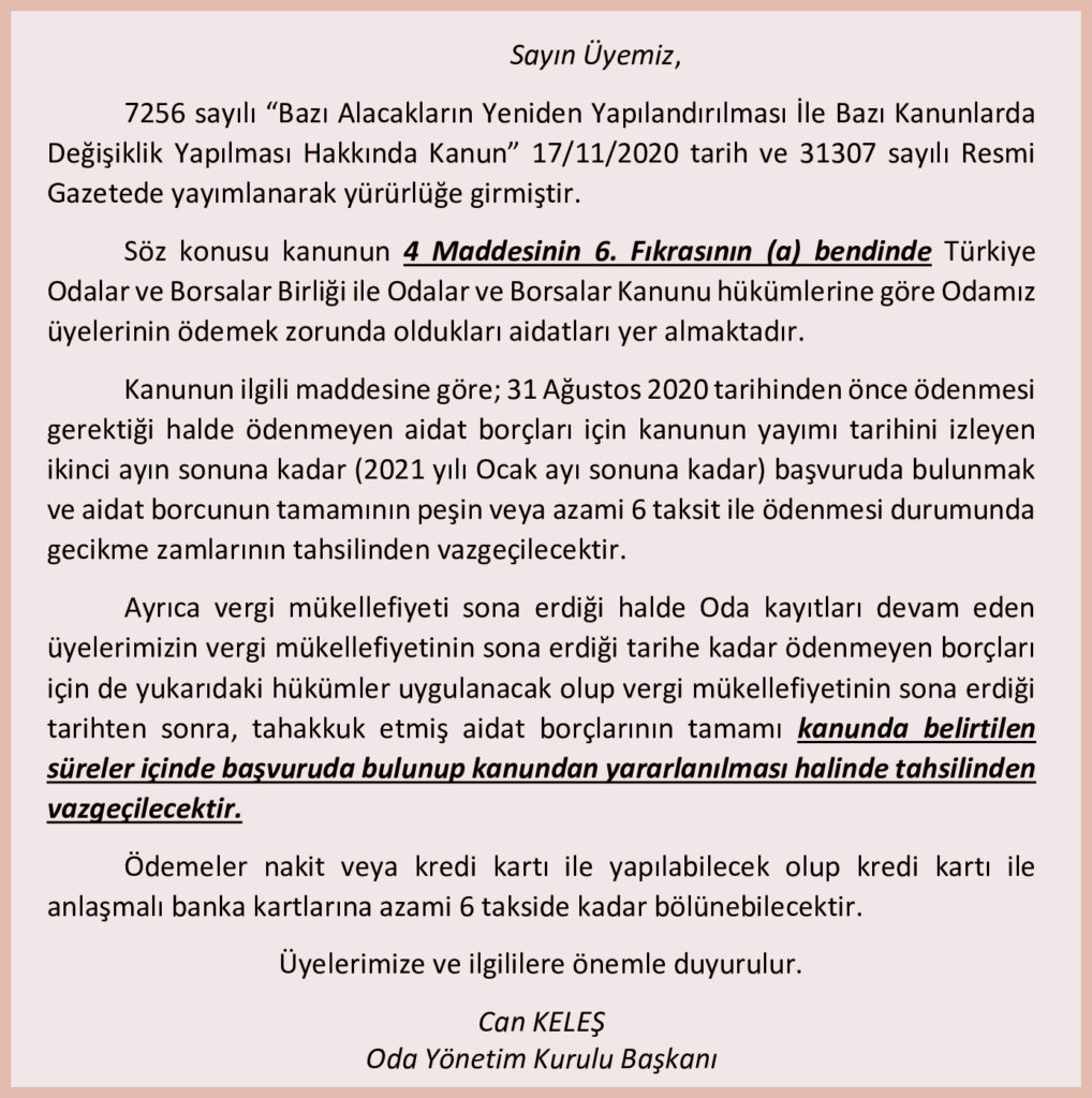 Oda ve Borsa Aidatları Ödemelerine 7256 Sayılı Kanun’la Getirilen Yeni Düzenlemeler Be Sociable, Share! Tweet